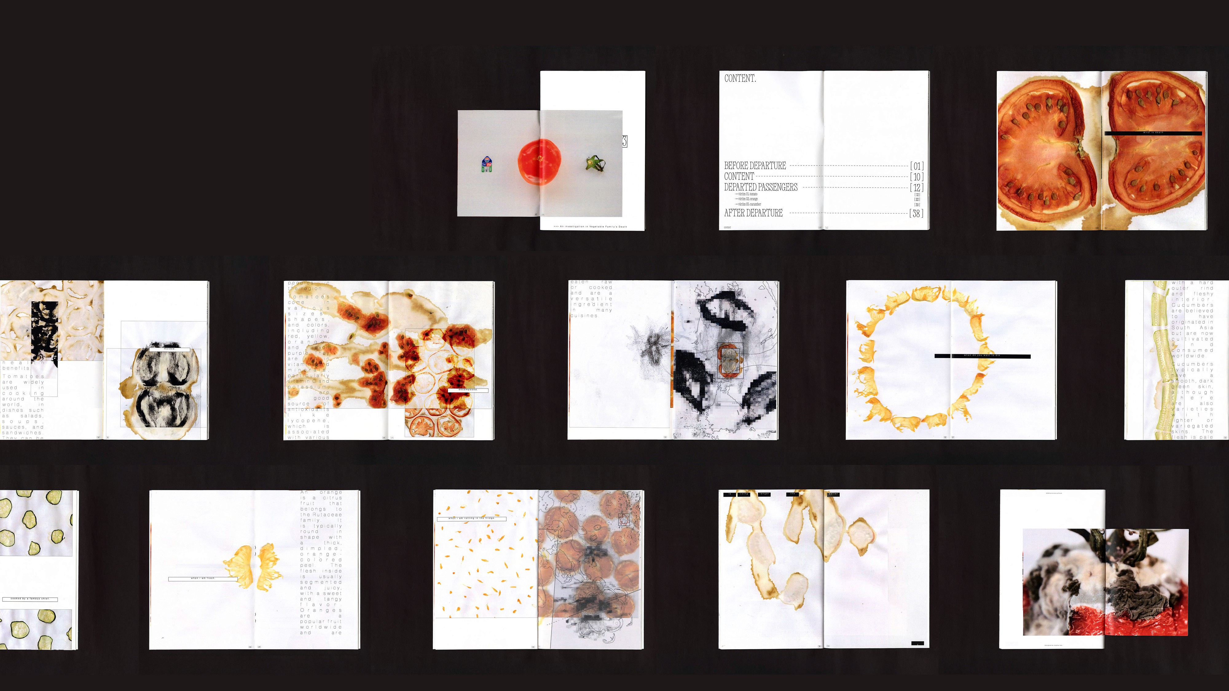 This zine explores the materiality and affordance of vegetables by using tomatoes, cucumbers, and oranges both as tools for mark-making …